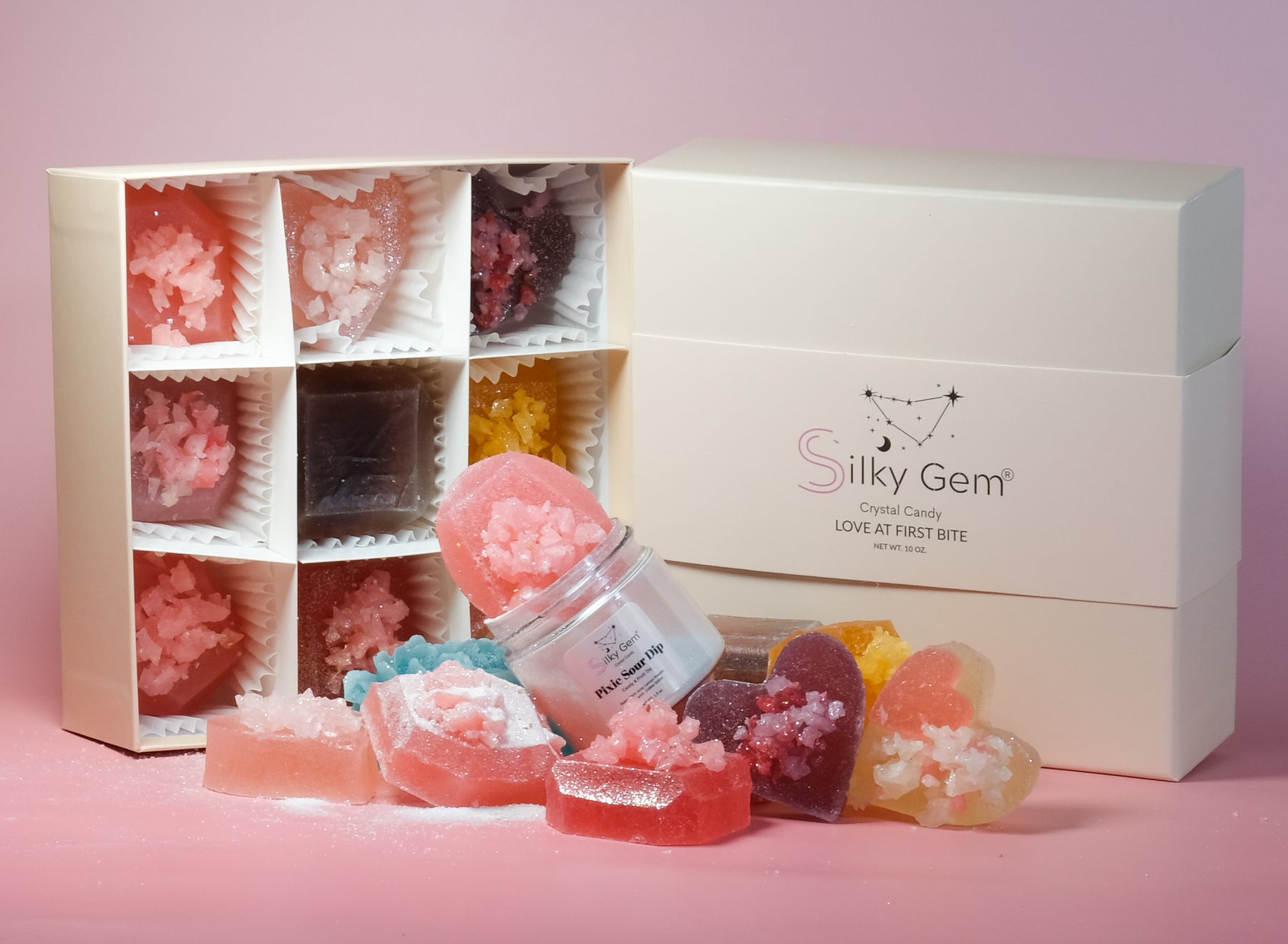From delicate fruit flavors to dazzling sparkle and zesty citrus, this bundle captures the full Silky Gem® experience in one unforgettable Valentine’s offering.
