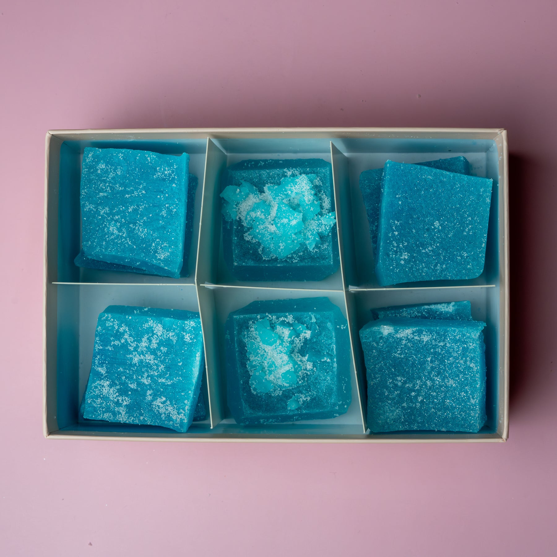 Perfect for gifting, sharing, or treating yourself, the Sour Blue Raspberry Lapis Collection brings a fun, sour-forward twist to our iconic gems—beautiful to look at, irresistible to taste.
